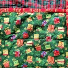 • Reversible design with plaid center • Quilted for durability • Easy to secure around tree base • Festive gift print pattern