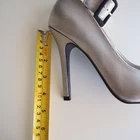 These Qupid pumps offer a sleek silhouette with a textured silver finish, designed for a sophisticated touch to any ensemble. The sturdy ankle strap with buckle provides secure wear, while the pointed toe and high heel elevate the look with elegance. • Pointed toe design • Ankle strap with buckle • Silver textured finish • High heel style • Secure fit Heel height approximately 4 inches. Size: Womens 7 Condition: Pre-Owned Good