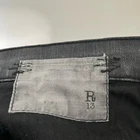 R13 Women's The Drop Dusty Black High Rise Skinny Ankle Jeans Size 25 Fabric: Stretch denim Drop crotch and cropped profile Single-button closure and zip fly 5-pocket styling Approximate Measurements taken flat: waist 15, rise 12, inseam 27 Pre-owned; in excellent condition. No rips, stains or holes. Minor wash wear- noticeable from color transfer on interior tags/labels. Please see all photos for condition details.