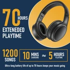 3 EQ Modes & HIFI Sound Quality: Adopted most advanced dual 40mm sound unit and 3 EQ modes. Simply switch the bluetooth headphone between balanced sound, extra powerful bass and mid treble enhancement modes. Experience high-fidelity sound reproduction that brings every note and detail to life, enhancing your music listening experience. 70 Hours PlayTime & Fast Charging: Headphones wireless bluetooth could get 70 hours in between charges, with no need to worry about a sudden power outage. You can charge the wireless headphones via the Type-C port, charge for 10 minutes, and enjoy 10 hours. Or you can use a 3.5 mm plug cable to switch the wireless headset to a wired mode. Advanced Bluetooth 5.3: Stay connected to your device with confidence, thanks to the advanced Bluetooth 5.3 capability of Headphones. Ensures a strong, continuous connection within a range of up to 30ft from the paired device. It greatly improves transmission speed, providing you with a low-latency listening experience. No Low Battery Anxiety: If you suddenly have no power during use, you can plug included 3.5mm audio cable to complete a seamless toggle, and by included lightweight carrying pouch, enjoy uninterrupted music anytime anywhere. All Day Comfort: The wireless headphones is designed for long-term comfort. Super soft memory foam ear cushions ensure outstanding comfort. Ergonomic headphone construction, multi-level adjustable headband can be obtained to suit your best size.
