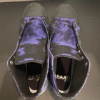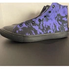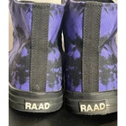 Make a bold statement with these unique tie-dye high top sneakers. The striking purple and black pattern creates an edgy, artistic look perfect for alternative and streetwear styles. These canvas shoes blend grunge aesthetics with modern design, ideal for music festivals, urban outings, or adding character to casual outfits. The black rubber sole and toe cap provide durability and style. Color: Purple Department: Unisex Adults Model: RAAD High Top Tie-Dye Style: Sneaker Shoe Width: Standard Shoe Shaft Style: High Top Upper Material: Canvas Type: Athletic Keywords: tie dye, high top, canvas shoes, purple sneakers, alternative, grunge, streetwear, urban, unisex, RAAD shoes, black sole, custom sneakers