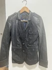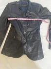 Shell 100% leather Lining 95% polyester, 5% spandex Good condition 3 pockets Mona's blue leather blazer style jacket on Pretty Little Liars Falls winter Check the pics for measurements Ship next 2 business days