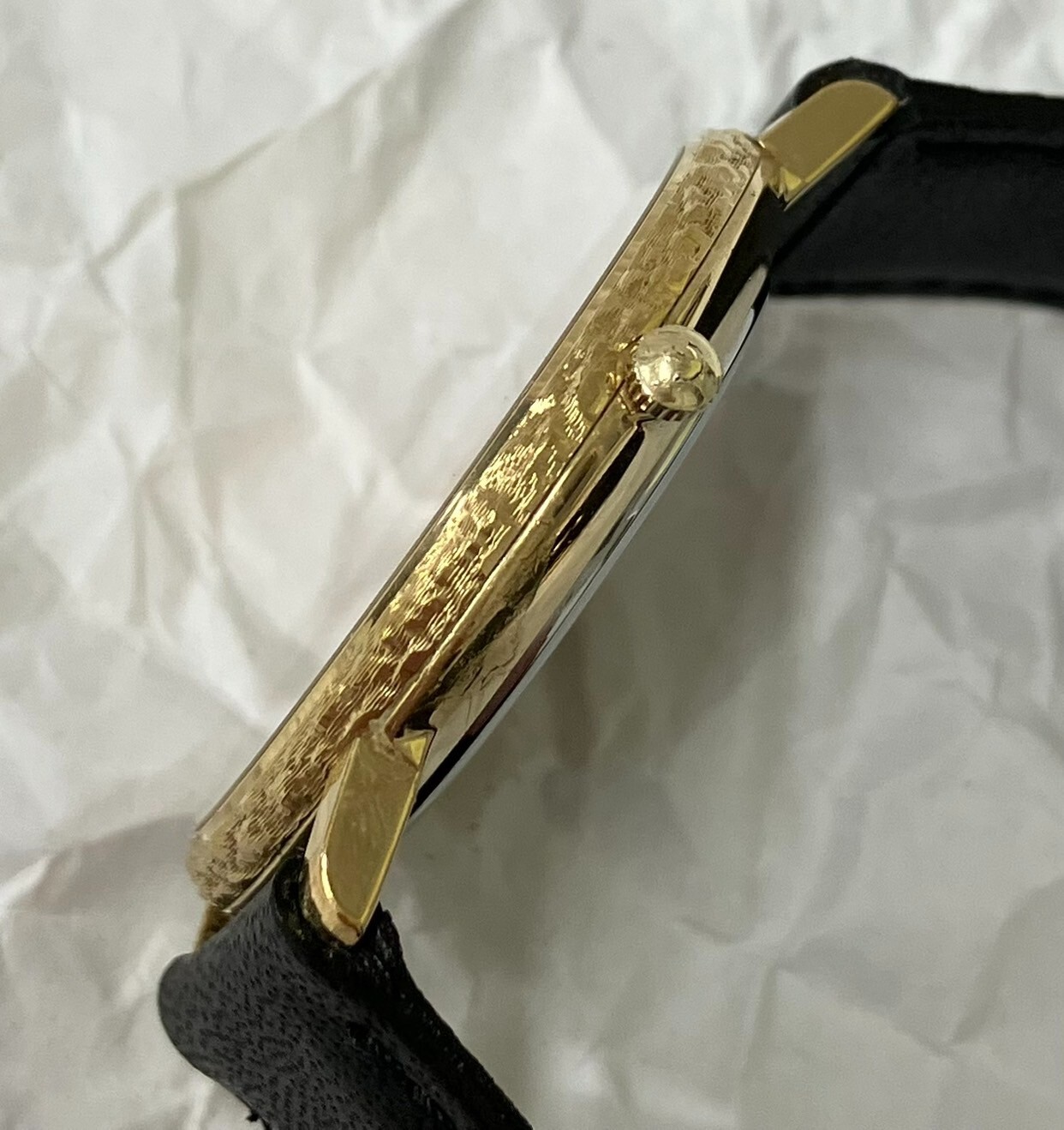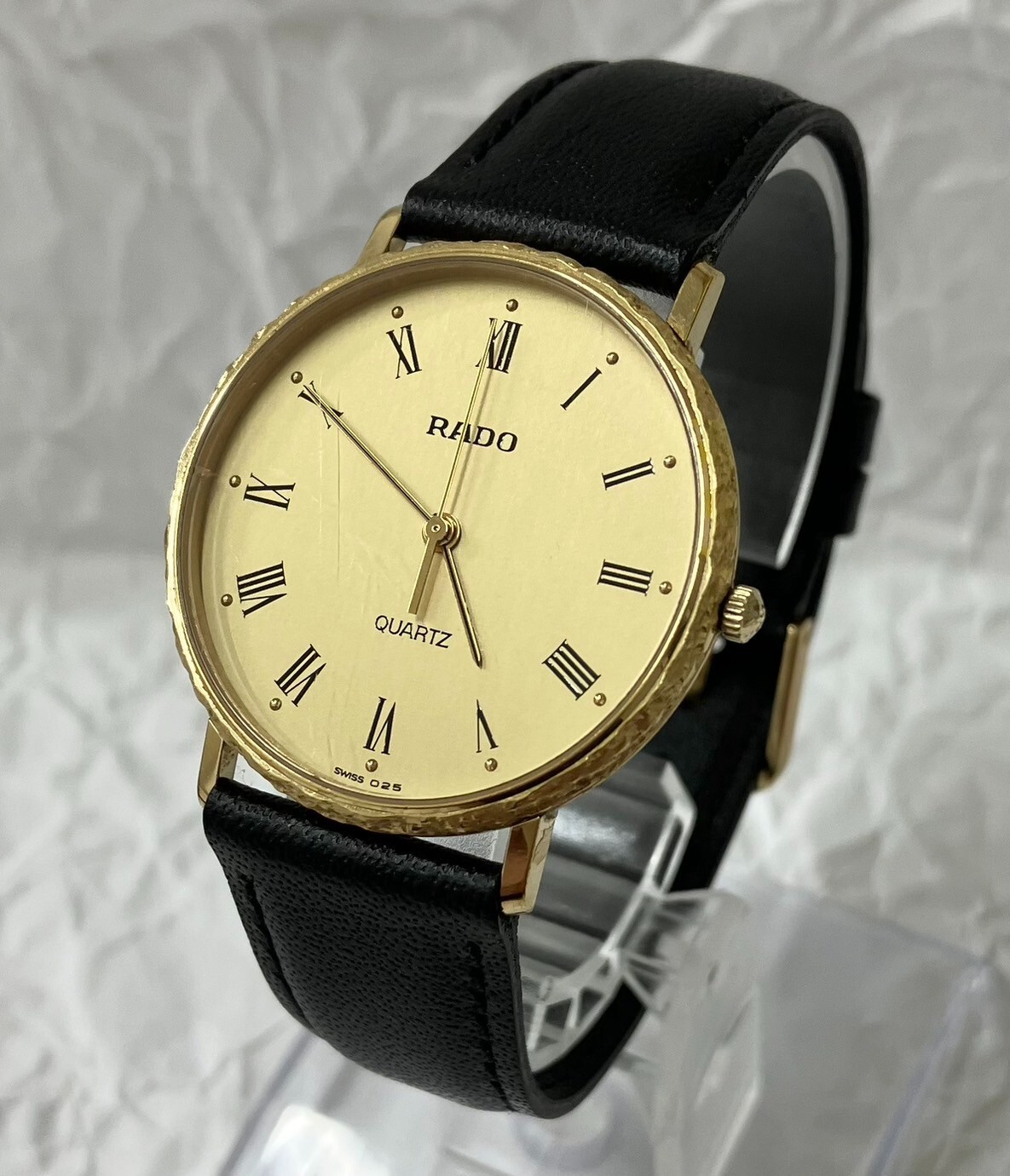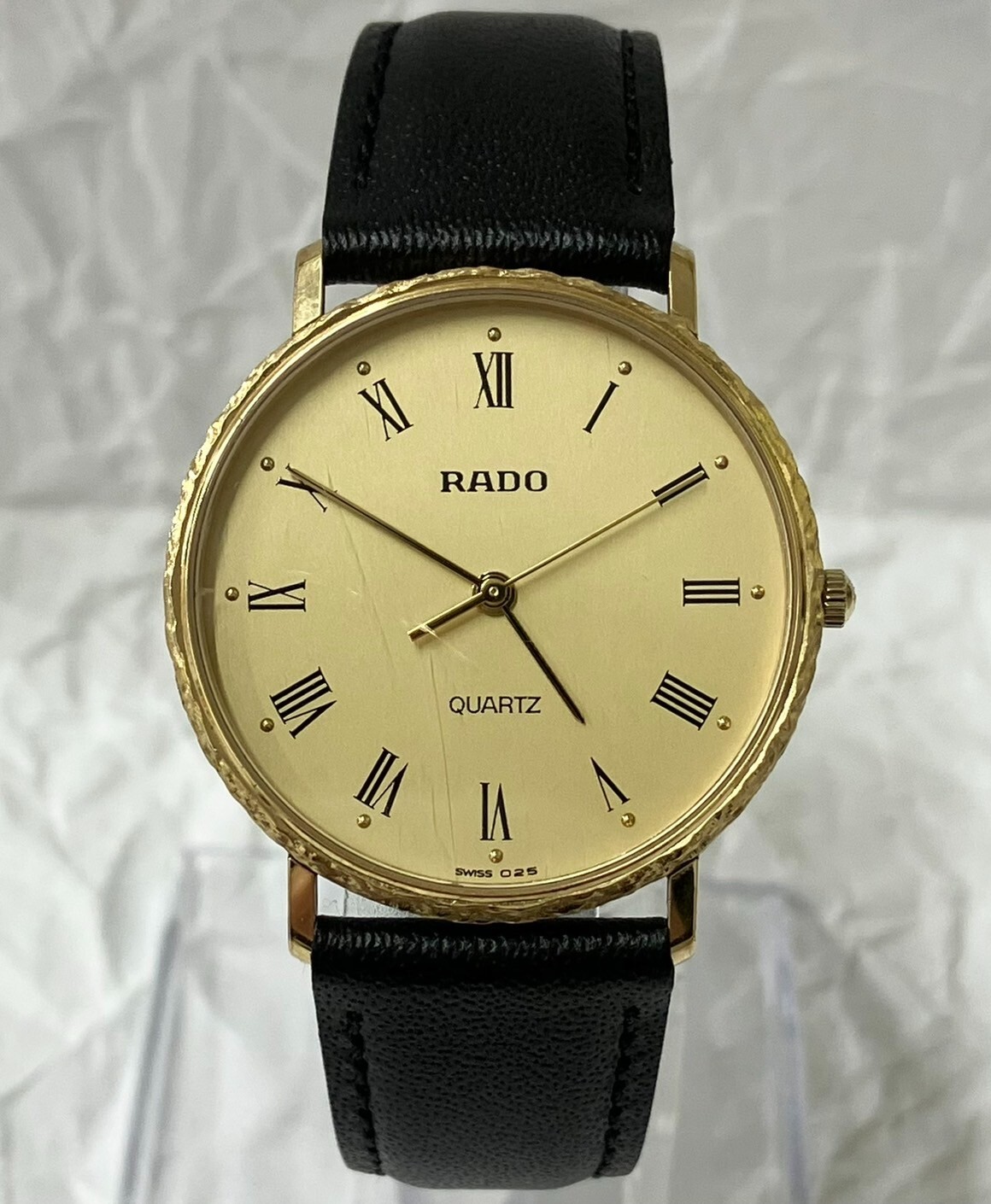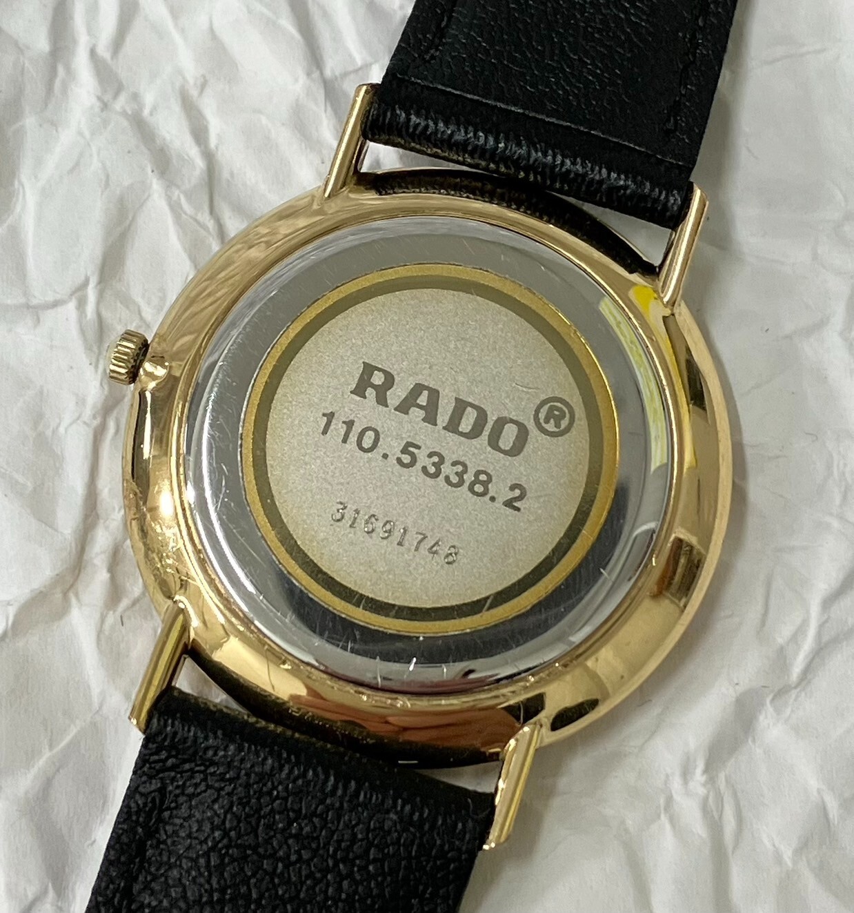 The case is clean with a few minor scratches throughout. There is a vertical scratch on the left side of the windshield (see image). The watch is in good working order (battery changed on 4/19 + simple cleaning) *This watch comes with an external belt (unused). Model number: 110.5338.2 Driving system: Quartz (battery-powered) Color: Gold and black Case size: approx. 33mm in diameter Belt thickness: approx. 1.8 cm Belt size: approx. 16-19.5 cm Accessories:None -------------------- This item has been determined to be genuine by an authenticity agency. Secondhand dealer's license No. 62111R061036 issued by Osaka Prefectural Public Safety Commission We are a fast and courteous transaction. I am a very happy customer. oh419050