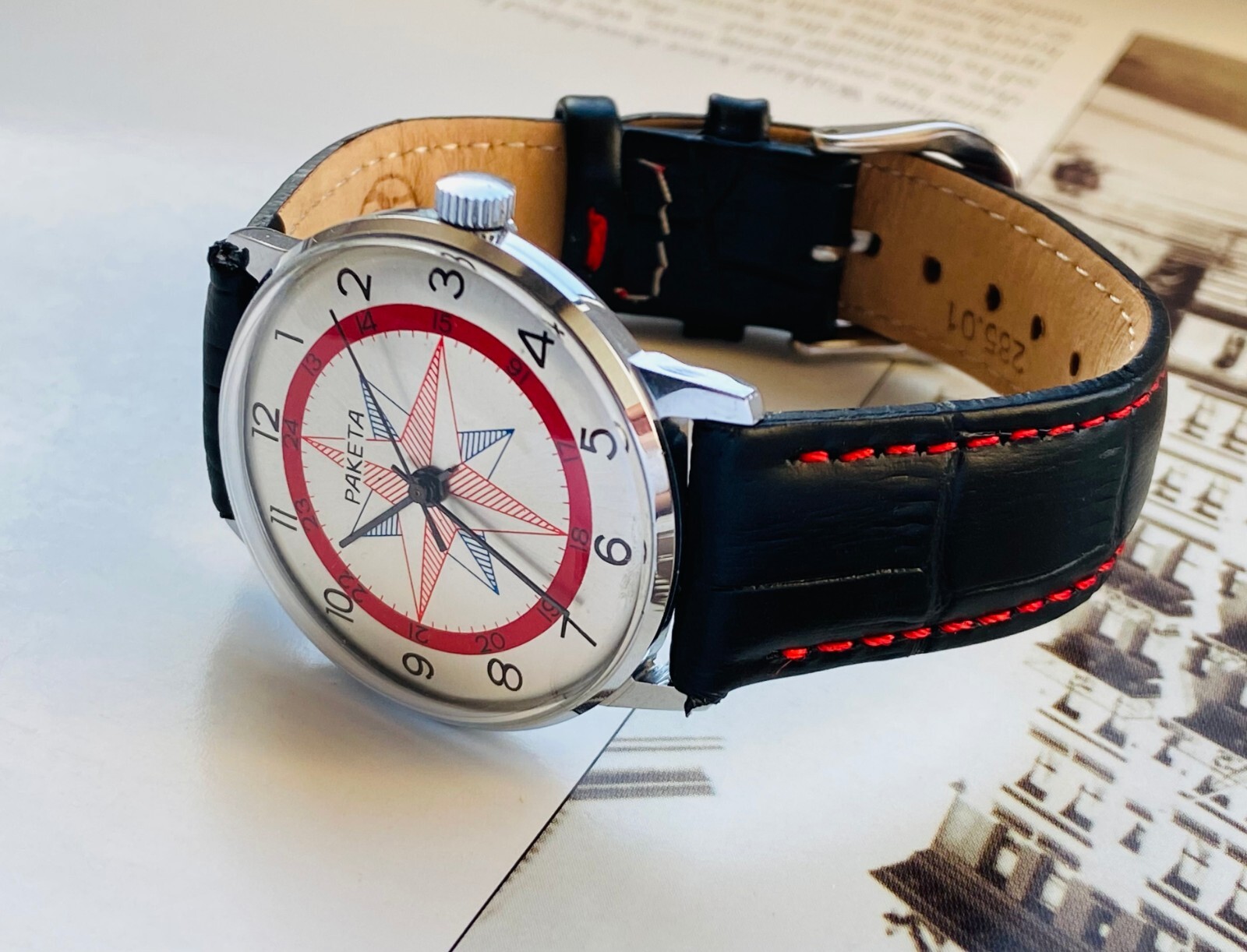 Raketa "Rose of Wind" Vintage Wristwatch By purchasing this watch you get a great accessory! Mechanism: cal. 2609HA , the central second hand; anti-shock device of the balance axis, mechanical , hand-winding. Number of jewels - 19 New leather strap Size - case diameter : 34 mm without crown, with crown 36 mm Lug to lug - 40 mm , Strap width - 18 mm Cosmetic condition is very good for vintage watch , All the details you can see in the pictures. Working condition : watch works well, tested and served. See the pictures . All the pictures are actual. If you have any questions about delivery or the item, please let me know . Thank you . Dear customers, I send parcels by Ukrposhta worldwide from Ukraine without delay. The delivery time is now the same as before, regardless of the situation in my country. All services are working. Therefore, please not worry when ordering in my store. All parcels have been delivered to customers I sell vintage watches from USSR period. The watches was served and restored. The vintage watches are still good accessories. Also broken watch parts for creative projects and jewelry making. All the proceeds from sales support my family and support the economy of Ukraine.