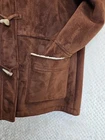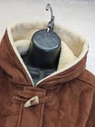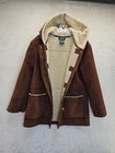 The RALPH LAUREN Toggle Closure Shearling Ultrasuede Hood Duffel Peacoat in size XL is a stylish and versatile outerwear option for women. Made from manmade suede with a cozy shearling lining, this mid-length coat features a classic pea coat style with a hood for added warmth. The toggle closure and button/zipper accents add a functional touch, while the solid brown color and timeless design make it suitable for various occasions including travel, casual, and business. With its high-quality construction and reputable brand, this Superb coat is a fashionable and practical choice for the colder seasons....B1862