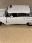 This is a rare 1997 Road Champs diecast model of a 1957 Ford Fairlane police vehicle from the Vintage Police Car Series. The scale of the model is 1:43, featuring a white Ford Fairlane design used by the Illinois State Police. This collectible toy is suitable for boys and girls aged 8 and above, making it an exciting addition to any diecast vehicle collection. The model is not customized and does not come with an autograph.