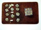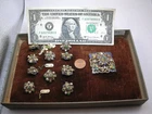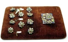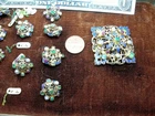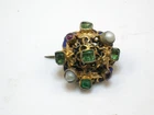 Hello and welcome to another of my listing. Today for your consideration is this impressive , Victorian Era, 10 buttons and 1 brooch set. Made in Austria. As found and untouched condition. Made from some type of gilded metal and decorated with enamel and genuine gems including emeralds, rubies and pearls. In need of expert cleaning. There is some metal discoloration and some patina. We do not clean antiques due to many of ours customers request. One dollar bill and one cent coin was placed for size comparison. Will be shipped with original box that this lot was found with. Buy it now or best offer. Please see detailed pictures because they can describe item condition and its beauty better then I can. PLEASE CHECK MY LISTING FREQUENTLY FOR MORE WATCHES, FINE QUALITY ANTIQUE JEWELRY, ART, SILVER, UNUSUAL AND RARE ITEMS.