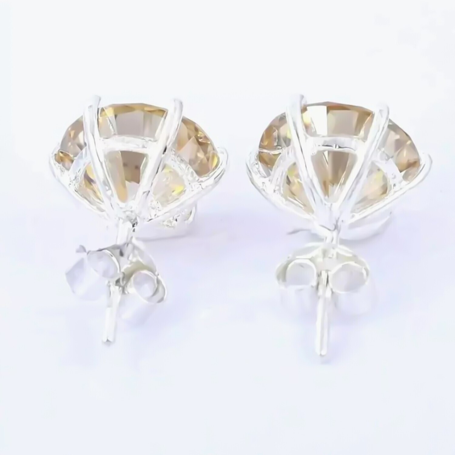 $ 120.8910.00 Ct Champagne Diamond Stud Earrings 925 Silver Statement Jewelry