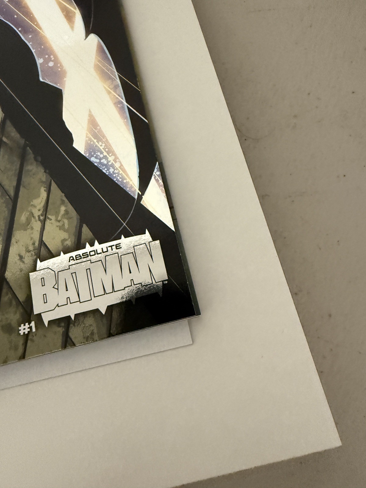 The Absolute Batman variant comic book was packaged well and securely. Book shipped quickly. The book was as described and looked very nice. Book appeared to be exactly like its pictures. The book was in great condition. Book was of high quality and was a great value for the price I paid. I would use the seller, again.