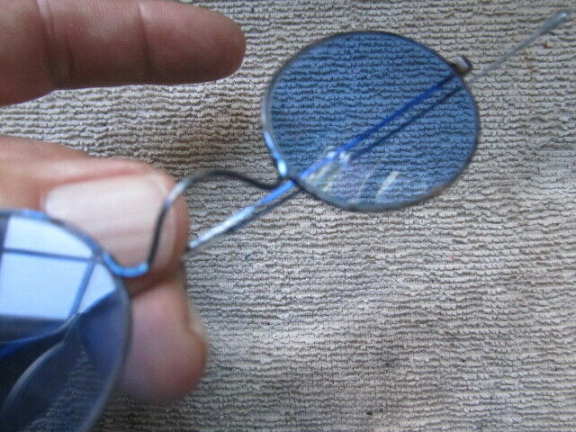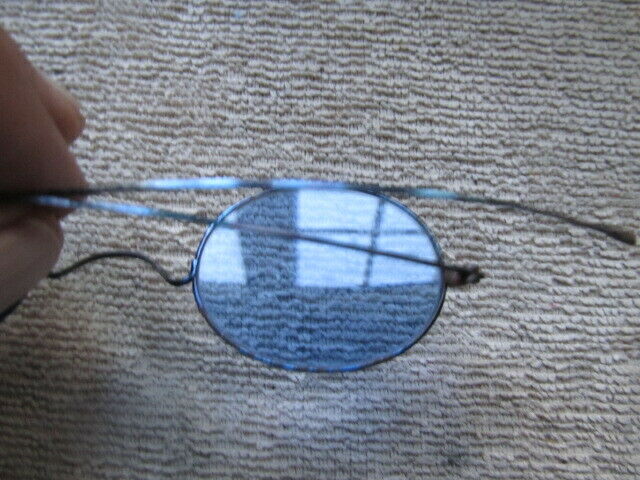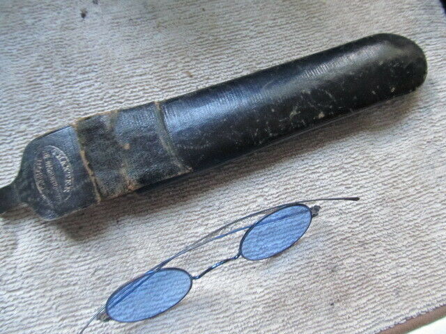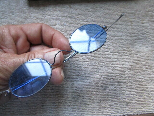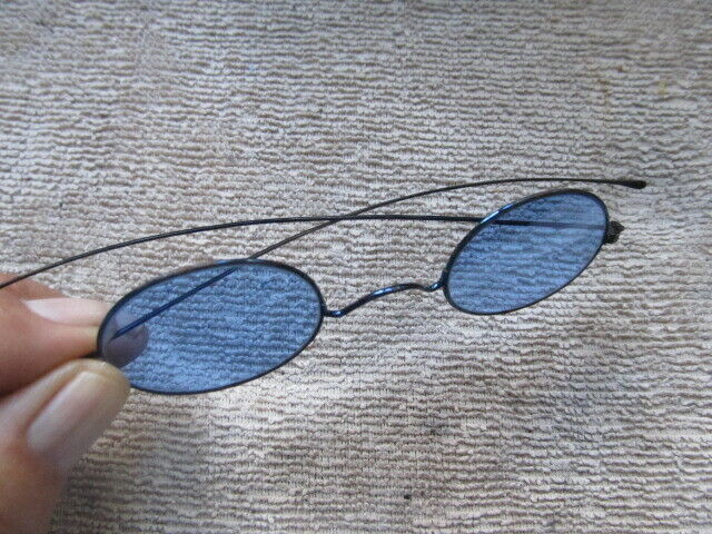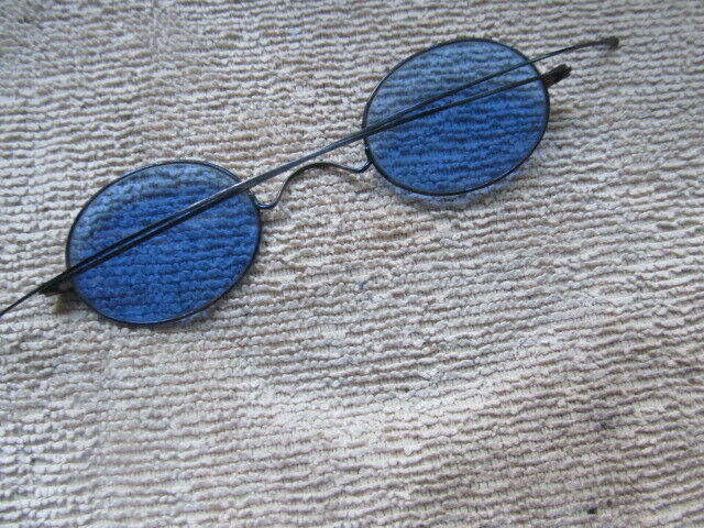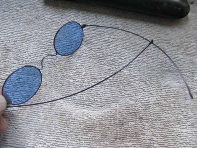 Extremely RARE Antique Victorian Oval Wire Frame BLUE TINTED SUN Eye Glasses in ORIGINAL LEATHER CASE D ESCRIPTION: Scans show it all.....VERY NICE pair of antique Victorian oval steel frame eye-glasses. THESE ARE QUITE RARE AND WERE MADE WiTH NICELY TINTED LENSES FOR EYE PROTECTION FROM THE SUN. Excellent condition overall. ANTIQUE GLASSES ARE ALWAYS NICE, AND THESE ARE EVEN MORE SPECIAL WITH THE TINTED LENSES. Frames are in great shape with excellent original patina. Lenses are a pleasant blue tint, not often seen. Also not often seen, these come with the original leather case. Marked in gold, and appears to be "Thaxter, Washington St., Boston". This pair is complete and usable or a nice item to add to a variety of collections or displays. IT IS IN ONE OF THE NICEST CONDITIONS I HAVE EVER SEEN. If you wanted one typical pair, this is the one, and the nicest one I have ever seen. Also, can be worn with modern lenses to give an old fashioned look, used as props in theatre productions or with Halloween costumes, or just worn as they are to give a very unusual, cool look, etc. PLEASE SEE ATTACHED PHOTOS!!! Please see my auction list for other interesting items!! SHIPPING TERMS: Buyer pays $6.00 postage .
