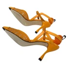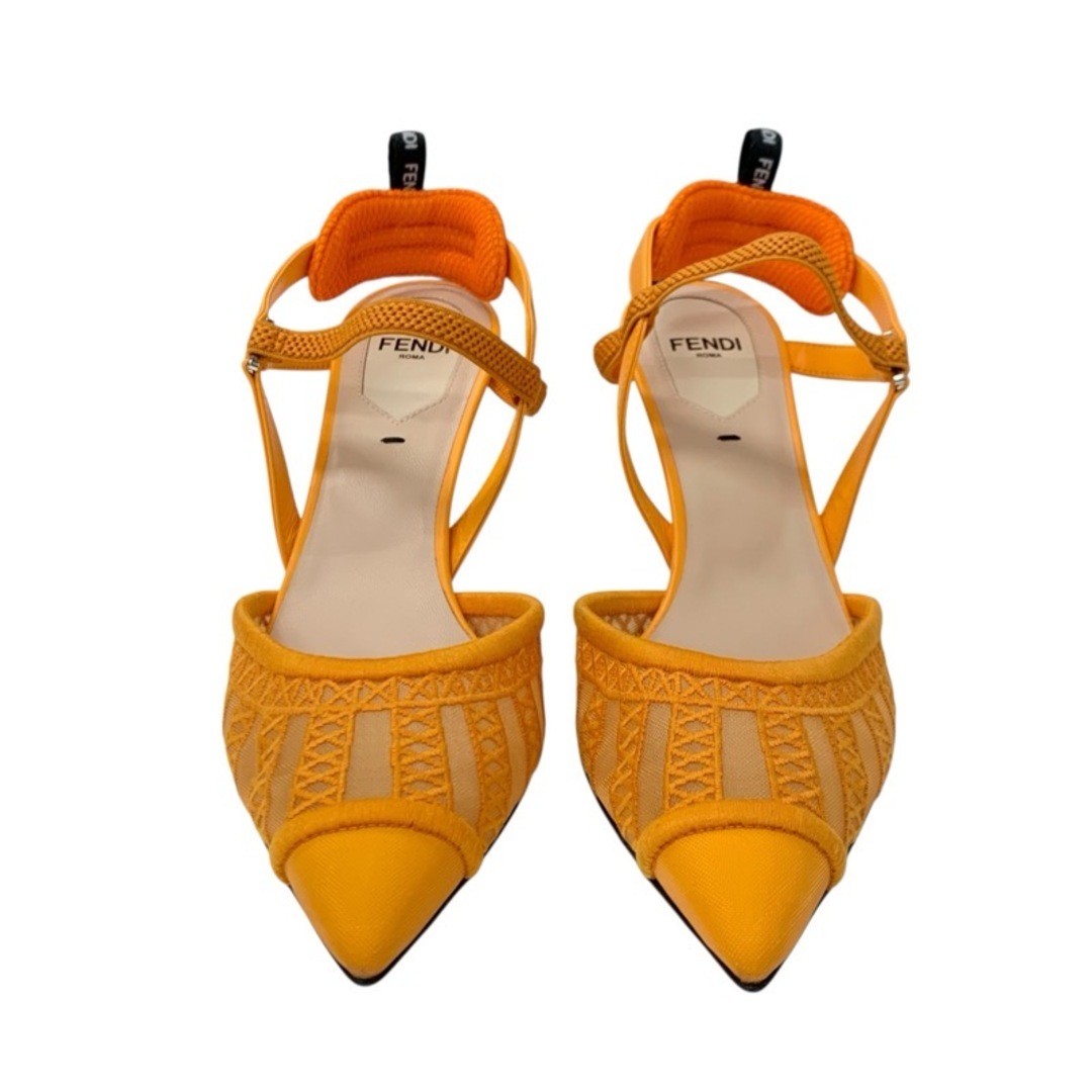 These Fendi Colibri pumps are absolutely stunning! The vibrant orange leather and chic slingback strap make them a standout piece. The quality is top-notch—luxurious fabric and perfect craftsmanship, just as expected from an authentic Fendi design. They fit true to size and are surprisingly comfortable for heels. The rarity of this style makes them a must-have for any fashion lover. Shipping was fast, and the seller was super responsive when I had questions. Definitely worth every penny—highly recommend grabbing them before they’re gone!