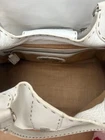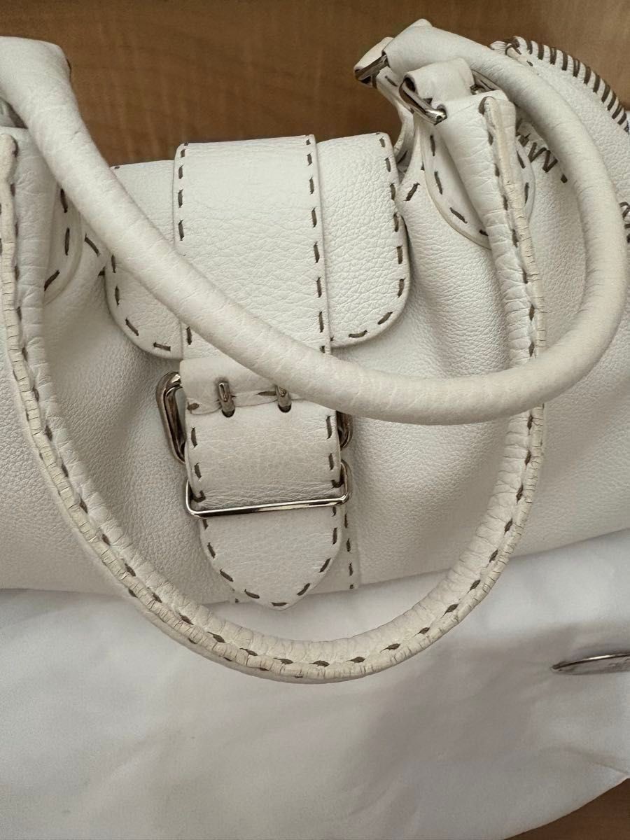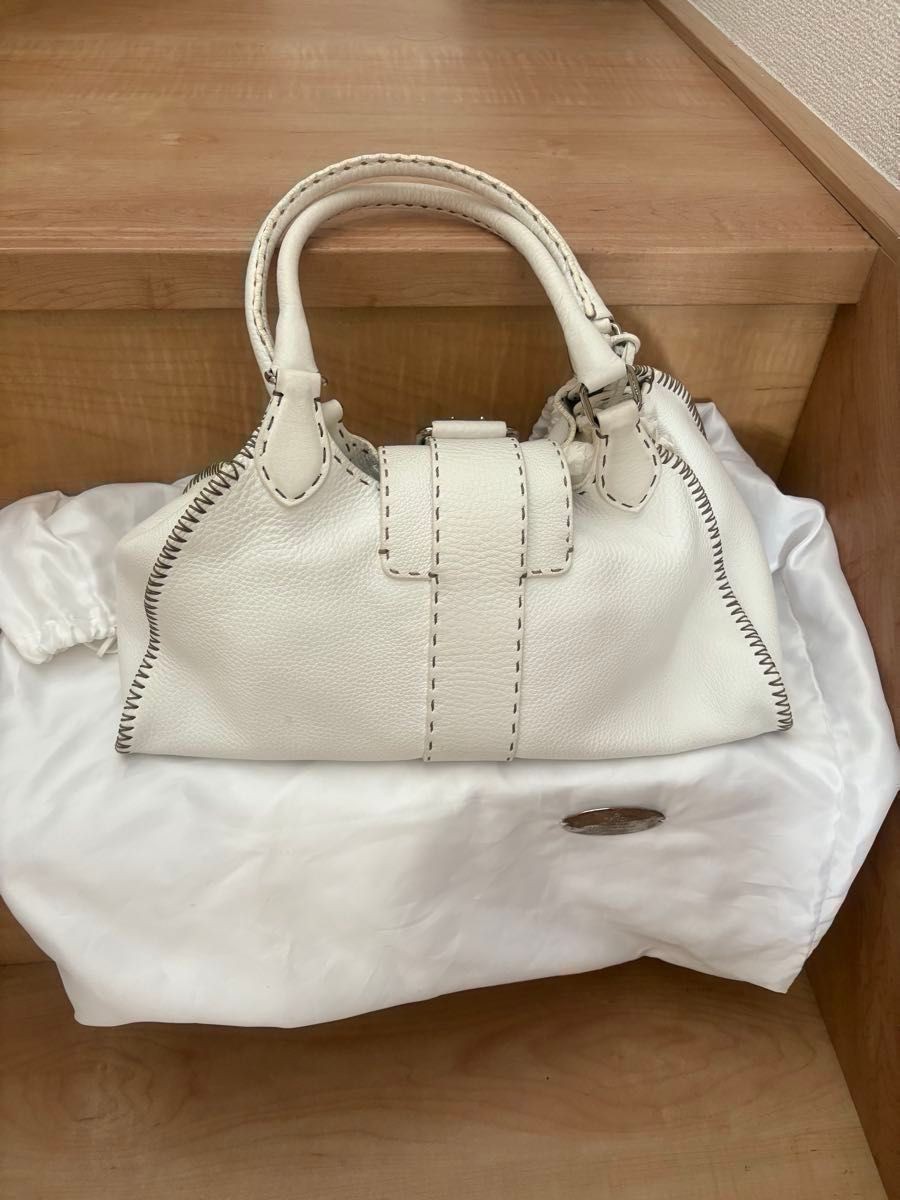 RARE FENDI FF Logo Embossed Leather Handbag with Gold Hardware Clasp
