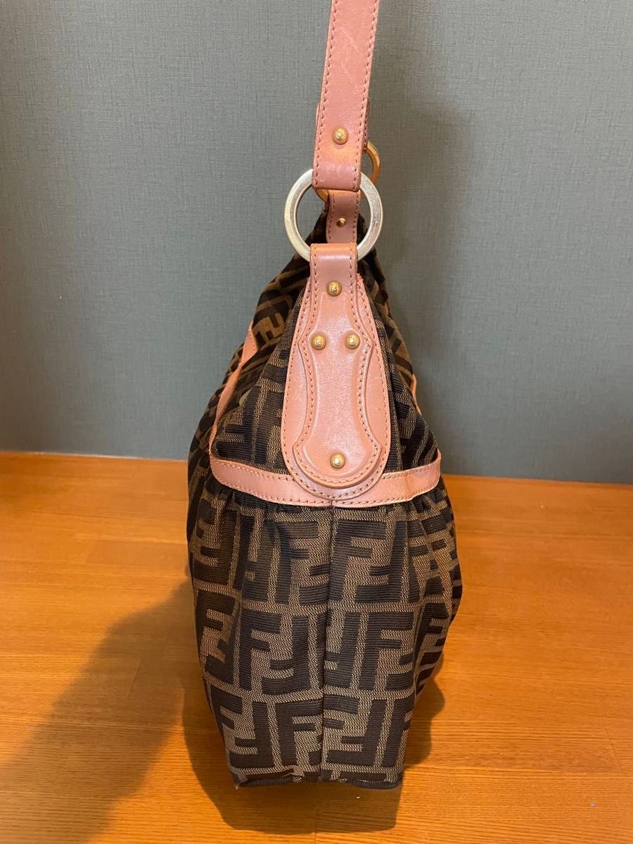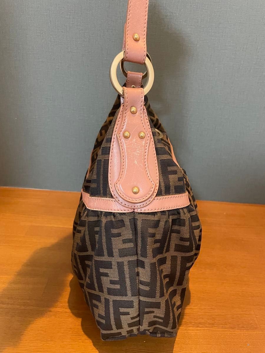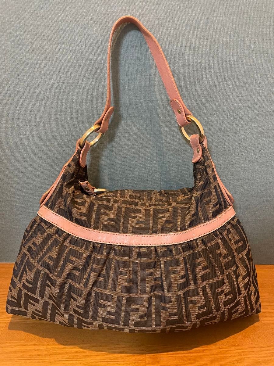 RARE FENDI Black Leather Zucca Pattern Shoulder Bag BLK 15788