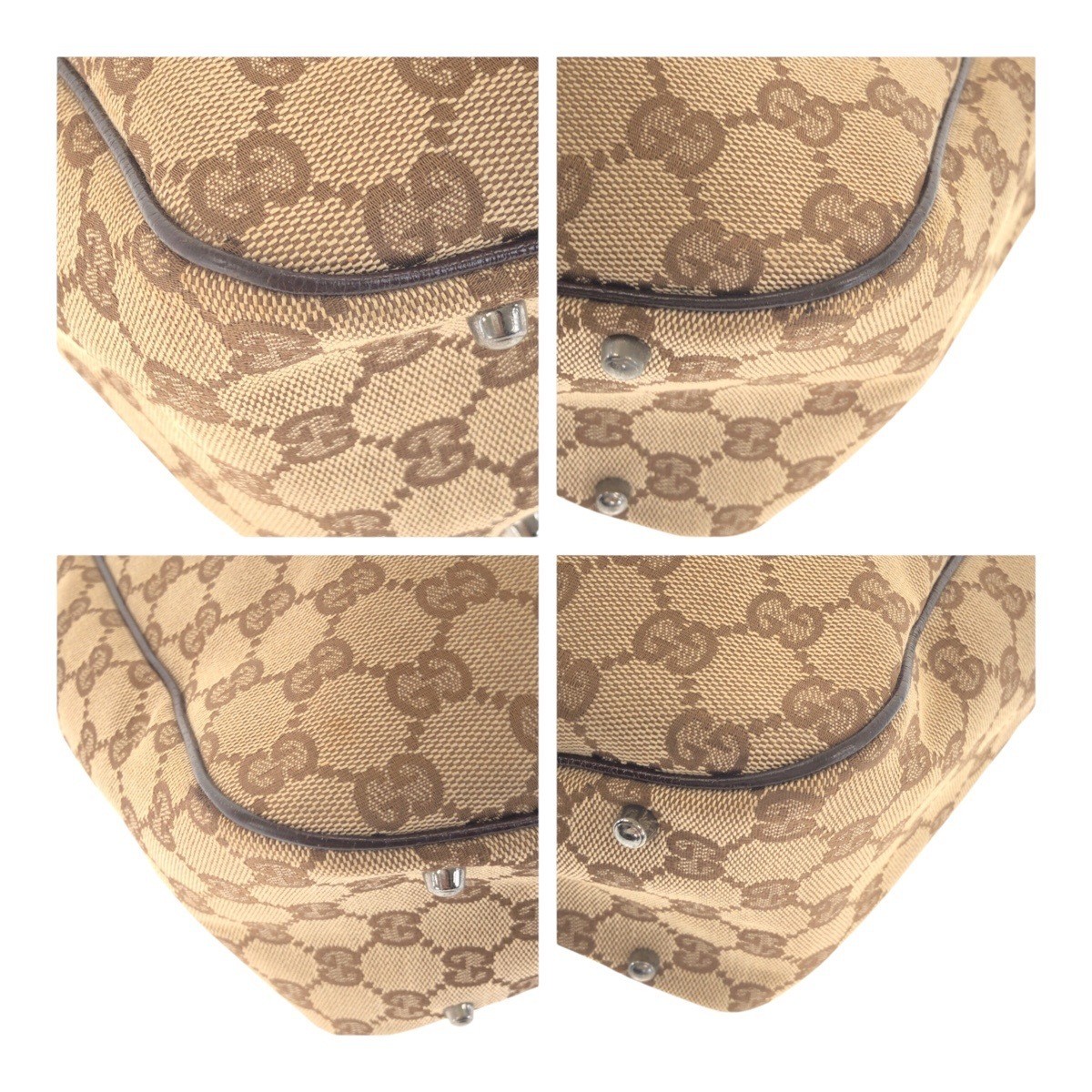 GUCCI Sherry Line GG PVC Leather Brown Hand Bag Boston Bag Vintage Authentic