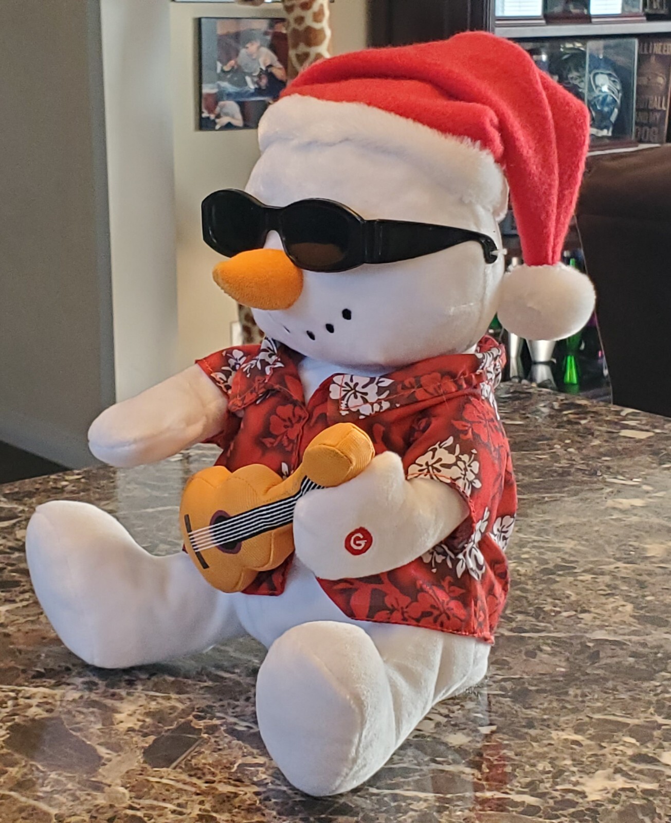 This works perfect with no issues whatsoever..it dances and plays the guitar to the Christmas Vacation song Mele Kalikmaka!! Very clean with no stains on it..any other questions be sure to message me before buying..be sure to check out my other Gemmy collectibles as I bought out a huge collection..all orders are shipped within 24 hours after payment is received This Gemmy Hawaiian Snowman guitar sings the popular Christmas Vacation song, Mele Kalikmaka. It is a rare and unique collectible that is perfect for the holiday season. The snowman design is perfect for those who love winter and Hawaiian themes. The item is made by Gemmy, a well-known brand that specializes in holiday decorations. This Hawaiian Snowman guitar is a great addition to any collection of holiday and seasonal items. It is sure to bring joy and happiness to anyone who hears the song.