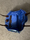 This Tory Burch Ella Large Tote in Blue Carousel is a rare and hard-to-find designer bag. With its beautiful floral pattern, magnetic closure, and double handles, this tote is perfect for any occasion, whether it be travel, wedding, party, or casual. The light blue exterior color and gold hardware color add a touch of elegance to the bag, while the brown handle/strap color gives it a classic and equestrian feel. The tote features inner pockets, lined with blue, and has a large size of 17 in width, 13 in height, and 5 in depth. It is made of high-quality polyester material and has brass hardware material. This limited edition bag is like new and comes with a EUC designation. The Tory Burch Ella Tote product line is known for its superior quality and this bag is no exception.