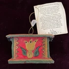This rare House of Hatten Father Frost Ornament Treasure Chest from 1991 is a must-have for any collector. The small 4 inch ornament features hand-painted flowers in multicolor resin material. It comes from House of Hatten's collection of ornaments and is perfect for a Christmas occasion. The ornament is a vintage piece and has been carefully crafted using traditional production techniques. It is a one-of-a-kind item that will make a great addition to any collection. Get your hands on this unique House of Hatten ornament now! Sealed in original packaging!