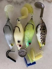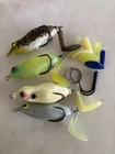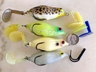 HOOKED-ON-VINTAGE IS SO PLEASED TO OFFER TOPWATER FROGS, RARE LOT 4 OF TECKLE TACKEL PADDLE TAIL FROG TOPWATER FISHING LURES CRANKBAIT FROGS WITH EXTRA PADDLE TAILS LEOPARD FROG SPOT. VTG LOT 4 WEEDLESS WEEDLESS LURES FROG SPOT TOPWATER SOFT FLOATER. SO SORRY THE U.S. QUARTER IS NOT INCLUDED WITH THESE LURES, IT IS MERELY TO SHOW SIZE / SCALE OF THE BAITS IN THE SUPER-SIZED PHOTOS. THIS LISTING IS FOR A NEW LOT OF 4 FROG FISHING LURES AS SHOWN IN THE PHOTOS, SOLD AS SHOWN IN THE SUPER-SIZE PHOTOS. I HAVE OTHER GREAT VINTAGE FISHING GEAR FOR SALE ON EBAY CURRENTLY, AND WE LOVE TO COMBINED THE SHIPPING TO SAVE YOU MONEY AND ALLOW YOU TO GET ALL THAT YOU WANT FOR YOUR COLLECTIONS, OR FOR GIFT GIVING. SOLD AS IS, AND AS SHOWN IN THE SUPER-SIZED PHOTOS. Please email us with any questions! Thank you for looking!