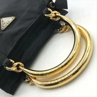 RARE PRADA Good Condition PRADA Tessuto Nylon Triangle Logo Gold Handle Hand Bag