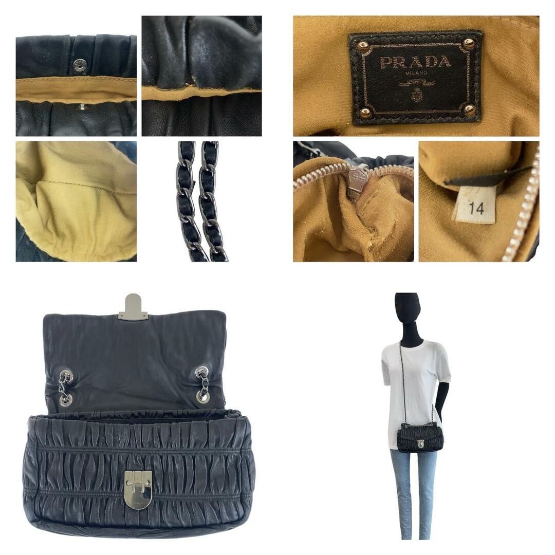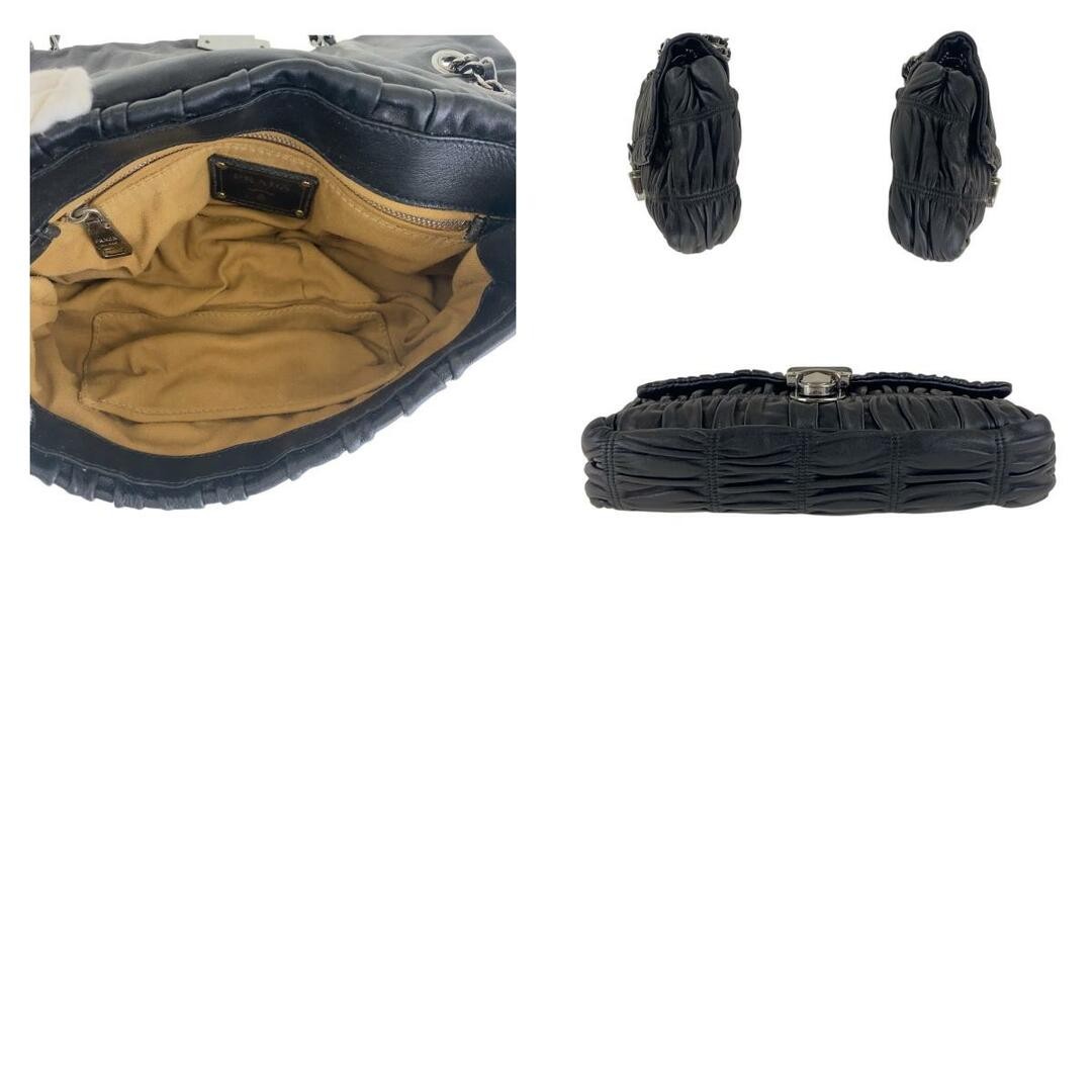 RARE PRADA PRADA Black Silver Hardware Leather Crossbody Chain Shoulder Bag Gath