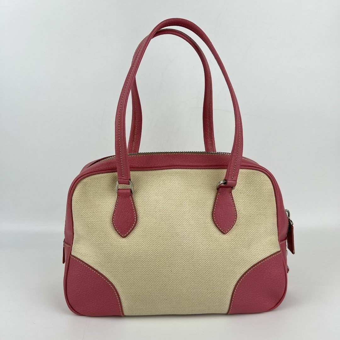 RARE PRADA Used PRADA tote bag shoulder bag pink leather canvas vintage ladies u