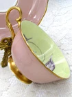 This is a rare Susie Cooper tea cup and saucer. Sandy tan, with a hand painted rose over a beige ground. The handle and footed base are fully overlaid with gold gilt, the rims are gold gilt trimmed. In very good vintage condition. No chips, cracks, crazing, or wearing of gold. Both items ping clearly when tapped. Please excuse the camera glare. I will gladly combine shipping for multiple items. Please contact me for a quote. Payments are expected within 3 days of auction ending, unless otherwise discussed beforehand. If you are combining multiple items, please wait for a revised invoice with the new shipping total. I am here to help in anyway that I can, so if you are unhappy with an item, please contact me first before leaving negative feedback. I believe anything can be worked out with communication. Thank you! I do not make any money from the shipping cost. I cover the cost of shipping supplies out of my own pocket. Please consider this before leaving other then a 5 star rating for shipping cost. I ship within 3 days of receiving payment. I ship by small package air to the United States, without tracking. If you require a tracking method, please let me know, and I will supply a tracking service, at extra cost. International shipping is by small package air, without a tracking number. I can ship with tracking, but the cost internationally, can be very high. Shipping to the United States can take from 6 to 14 business days, or longer, depending on customs. International shipping can take from 10 to 21 BUSINESS days, or more, depending on customs in your country. Auction Template Design © In My Cedar Chest - Unauthorized Duplication Prohibited. I will no longer ship to China without a tracking number. Please contact me for a quote before paying for your item.