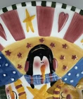 One chip on the underside, pic 2. There is a small crack on Santa’s beard that doesn’t go all the way through the plate, see all photos. Approximately 12” wide.