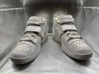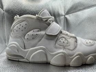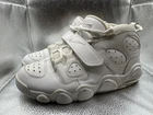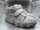 This Nike Air CB 34 Charles Barkley Basketball sneaker in size 10 features a lace-up closure and a mid-top shoe shaft style. The white leather upper is accented with a solid pattern, and the outsole is made of rubber for traction. Designed for basketball performance, the shoe offers cushioning, comfort, and breathability with a foam insole and synthetic lining. This 2016 release from Nike's Air line pays tribute to the 90s era with a colorful design and is suitable for activewear, casual wear, or workwear.