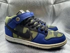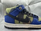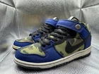 This is a rare and vintage pair of Nike SB Dunk Mid sneakers in a unique "Made for Skate" Blue Camo colorway. Featuring a mid-top silhouette with a lace-up closure, these shoes are designed for skateboarding with a cushioned, breathable, and comfortable design. The limited edition sneakers were released in 2013, with a colorful camo pattern and a standard shoe width, making them a standout addition to any sneaker collection. Perfect for activewear, casual wear, or workwear, these Nike SB Dunks are a sought-after piece for sneaker enthusiasts.