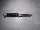 RARE Valor Stacked Leather Handle Fixed Blade Hunting Knife Japan Knfybxy. Condition is Used. Shipped with USPS Ground Advantage.