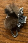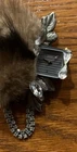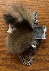 RARE Victorian Brooch Lady Head With Mink Hat & Collar Silver Watch With Rhinestones and Chain 4” Victorian Rare Porcelain Lady Head With Watch, Good Condition.