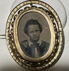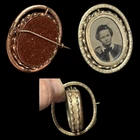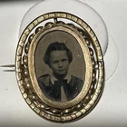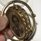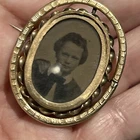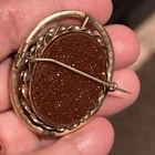 This Victorian/Georgian mourning brooch features an ambrotype photo spinner set in 14K gold-filled metal. The brooch is designed in a unique style with a goldstone main stone and features a filled main stone treatment. Its antique style and fashion department make it a perfect addition to your vintage and antique jewelry collection. The brooch is categorized as a vintage and antique jewelry piece, specifically a brooch or pin, under the Jewelry & Watches category on eBay. Goldstone one side and picture other side