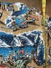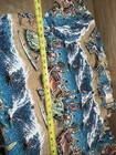 This Reyn Spooner Art of Eddy Y Hawaiian Shirt is a vintage-inspired button-up featuring a graphic print of Eddie Y on the front, perfect for a casual or party occasion. Made of breathable rayon material in a multicolor Hawaiian theme, this shirt has a classic fit with a collared neckline and short sleeves. The chest size is 48 inches, and it is machine washable for easy care. Perfect for summer, fall, or spring, this shirt is a unique addition to any man's wardrobe.