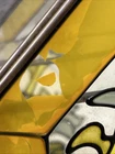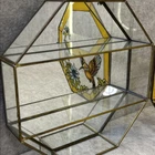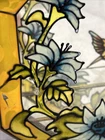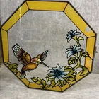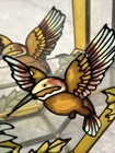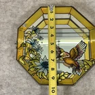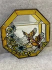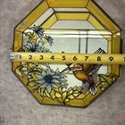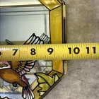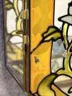 RARE Vintage Stained Glass Painted & Brass Curio Wall Cabinet Mirror 2 Shelves 9.5” x 9.5” x 2” Some chipped paint - see pictures 2 glass interior shelves Wall hanging