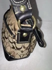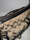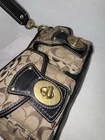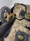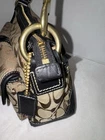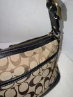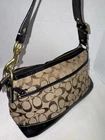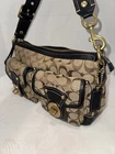 RARE Vintage Y2K Coach Legacy Turnlock Shoulder Bag 65th Anniversary #F12868 -Good vintage shape. Some external smudges to exterior canvas material as shown in pictures and one of the hardware gold pieces on one side of the turnlock pockets has unscrewed as seen in photos, but this does not affect the closure as it closes fine and is still functional. This bage is a rare vintage find and a real beauty and has a lot of life left. -Brown/Tan exterior canvas color tone with black leather trim -White stitching -Coach hangtag in black -Single handles that is adjustable at the strap -Gold brass hardware -2 external turnlock front pockets -Top zip closure -Interior zip and slip pockets -Exterior back zip pocket -YKK zipper -Exterior jacquard signature print -Timeless chic purse -Approximate measurements: Length: 30 cm; Width 9 cm; Height 17 cm -Style Number: F12868