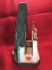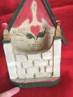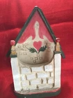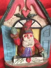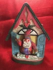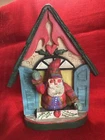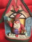 Scarce House of Hatten Christmas mail holder features a happy Santa in the open window of a cottage waving hello to all. There is a space on the back that will accommodate several cards or pieces of mail. The piece is en excellent condition with the usual flea size paint flecks as expected with H of H sculptures. The cottage measures 11.5 H x 8.5” W x 5 3/4” D. Signed twice along with a paper label as shown.