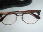 A pair of mens or womens Ray Ban burgandy and copper glasses and black leather case. The stems have slight wear and lenses need to be replaced. Seller will pay postage and postal insurance.