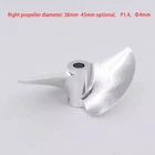 RC Boat Propeller 4mm 38mm 40mm 42mm 2-blades Aluminum Prop P1.4 for RC Racing Boat Description There propeller Suit for brush-less RC speed boat, RC racing boat upgrade spare part. Made of aluminum alloy, made by CNC.It is balanced,sharp and hard. There are two sizes available, please choose the correct size for your boat before purchasing. Tips Right-Hand(RH): which rotates clockwise as viewed from the stern when in forward gear Left-Hand(LH): which rotates counter clockwise as viewed from the stern when in forward gear ? Specification & Features * Material: aluminum alloy( 7075 ) * Hub hole diameter: 4mm, Fit 4mm shaft * Propellers diameter: 38mm/39mm/40mm/41mm/42mm/43mm/44mm/45mm optional * Propellers types: Left-hand, right-hand optional * Bayonet size:3mmx3mm * Pitch ratio: 1.4 ? Item Contains 1 Piece of CNC aluminum RC boat propeller for 4mm shaft( Diameter and propeller types optional )