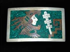 030518172 RC05172 VINTAGE 1970s **TRADITIONAL** SOUTHWESTERN DESIGN ART BELT BUCKLE REALLY GREAT BUCKLE ! Scroll Down For More Pictures (ad created with AdGen 16.9 - posted by: GW) GENDER: UNISEX ERA: 1970s MAKER: UNKNOWN FINISH: SILVERTONE METAL / TURQUOISE STONE INLAYS * GREAT VINTAGE BUCKLE !! * PLEASE REFER TO PICTURES FOR MORE DETAILS & CONDITION COMMENTS: * GUARANTEED ORIGINAL VINTAGE ITEM !! * GREAT VINTAGE PATINA!! MEASUREMENTS: 3.40" (8.6cm) Width 2.10" (5.3cm) Height 1.80" (4.6cm) Max. Belt Width Every item carefully hand measured! A GREAT ONE TO ADD TO YOUR COLLECTION !! **** IMPORTANT **** WE SELL VINTAGE ITEMS THAT MAY DETERIORATE OVER TIME. WE CAREFULLY INSPECT EACH ITEM AND TRY TO NOTE ANY VISIBLE FLAWS, BUT ARE NOT LIABLE FOR DAMAGE THAT OCCURS AFTER PURCHASE. ALL ITEMS ARE SOLD "AS IS" ONLY WITH NO WARRANTY OF ANY KIND EXPRESSED OR IMPLIED. Promotional Payment Information Payment Terms FULL PAYMENT REQUIRED WITHIN 5 DAYS OF PURCHASE! Payment Options Please see this site's payments section for available options. Shipping Information Shipping Rates U.S.A. CANADA OTHERS 1 Buckle $6.00 $15.00 $18.00 2 Buckles $7.00 $16.00 $19.00 3 Buckles $8.00 $17.00 $20.00 4 Buckles $9.00 $18.00 $21.00 <--BEST DEAL!!! FREE U.S.A. SHIPPING ON 10 ITEMS OR $200 TOTAL! FREE INTERNATIONAL SHIPPING ON 20 ITEMS OR $400 TOTAL! All items are shipped with a tracking # or delivery confirmation # in order to comply with buyer/seller protection requirements. International Buyers *Import duties, taxes and charges are not included in the item price or shipping charges. These charges are the buyer's responsibility. *Please check with your country's customs office to determine what these additional costs will be prior to bidding/buying. *These charges are normally collected by the delivering freight (shipping) company or when you pick the item up. DO NOT confuse them for additional shipping charges. *We do not declare merchandise values below actual selling price. We also do not mark items as "gifts". U.S. and International government regulations prohibit such behavior. *Some countries customs clearance can delay arrival of your shipment up to 60 days! BEFORE BIDDING ON OR BUYING OUR ITEMS YOU MUST AGREE TO THE FOLLOWING TERMS: Buyer agrees to pay for item within 5 days of purchase. No returns accepted without prior authorization from seller. Shipping charges will not be refunded or reimbursed on returned items. ***** All items sold "AS IS" only ******