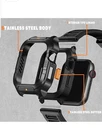 Bandletic R-Case Compatible with Apple Watch Strap 45mm for Men - Soft Breathable Sport Silicone Strap with Rugged Durable Shockproof Military Metal Case for Apple Watch Series 9 8 7, Black All-around Protection】The Bandletic for Apple Watch straps case is crafted from 316 stainless steel and features a TPU lining. Its raised bezel protects the Apple Watch screen from accidental bumps and daily scratches. Ideal for those in construction, equipment operation, or manual labor, it offers robust protection for your watch 【Precision Cutouts】Clicky button and precise cutouts ensure operate smoothly with the button, screen and crown. This ensures that your watch remains fully functional without compromising on protection 【Bold and Functional】With its sleek design and bold Ultra orange accents, for Apple Watch series 9 adds a stylish touch, ideal for daily wear, workouts, and outdoor adventures like running, hiking, and cycling 【Comfort Meets Durability】Bandletic strap compatible with Apple Watch strap 44mm 45mm features soft silicone rubber and an innovative ventilation system for increased airflow, providing a lightweight feel and ensuring the strap stands the test of time 【Widely Compatible】Adjustable strap fits most wrists (5.9"-7.9"), Specifically for Apple Watch Series 9/8/7(45mm