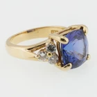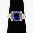 *READ: DO NOT BUY, This listing does not work, instead, BUY HERE or send me a message. The correct listing will not have "READ" in the title. 18k yellow gold ring cushion tanzanite diamond G / VS1 size 6 (1) cushion cut tanzanite, 10mm = an estimated 3.50 carats, Good/blue-violet/VS1; (6) round brilliant cut diamonds, 2.7 grams. 0.45 carats G / VS1 6.2 grams.
