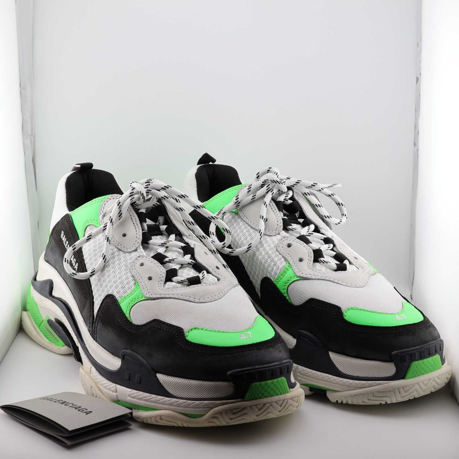 *READ: DO NOT BUY, This listing does not work, instead, BUY HERE or send me a message. The correct listing will not have "READ" in the title. Balenciaga Triple S Sneaker 'White Green Fluo' 536737 W09O6 9063 Comes with original box and booklet. Tag still attached to left shoe. US 14 EU 47
