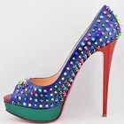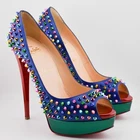*READ: DO NOT BUY, This listing does not work, instead, BUY HERE or send me a message. The correct listing will not have "READ" in the title. Christian Louboutin Lady Peep Spikes peep toe platform pumps metallic patent blue and green with mixed metallic colored spikes, 6" heels. Size 41 IT US 10.5. Comes with original box, 2 extra heel tips, 2 dust bags, and 6 extra spikes.