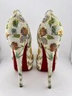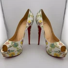 *READ: DO NOT BUY, This listing does not work, instead, BUY HERE or send me a message. The correct listing will not have "READ" in the title. Christian Louboutin Lady peep toe platform pumps, white python snakeskin with light gold and multi-color Tapisserie floral print, 6" heels. Size IT 41 US 10.5. Comes with original box, 2 dust bags, and 2 extra heel tips. Real snakeskin, not embossed.