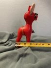 This vintage vinyl/leather stuffed reindeer deer toy is a perfect addition to your Christmas decor. Made in Japan, it exudes a charming and timeless appeal that is sure to capture the hearts of collectors and enthusiasts alike. Its smooth surface, combined with its durable and high-quality construction, makes it a great choice for kids and adults alike. The reindeer deer toy is suitable for ages 4 and up, and it is perfect for anyone who loves vintage and antique toys. Its character family is deer, and it is made in the United States. This toy is sure to bring joy and cheer to anyone who adds it to their collection. This toy shows its age, it’s missing its antlers and tail. Please see all pictures for condition.
