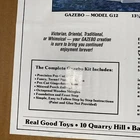 Experience the charm of a classic miniature with the Real Good Toys “The Gazebo” model G12 kit. A delightful addition to any dollhouse collection, this wooden structure brings a touch of nostalgia to your miniaturized outdoor space. The kit is designed for DIY enthusiasts, offering an engaging assembly experience with the assurance of quality craftsmanship from the renowned Real Good Toys brand. With its 1:12 scale, the gazebo model boasts a single room layout that's perfect for unfurnished interior design enthusiasts or collectors looking to expand their miniature world. The vintage style, combined with the ease of assembly, makes it an ideal project for hobbyists aged 12 and up. Whether displayed on its own or as part of a larger miniature scene, “The Gazebo” is sure to add character and sophistication to your collection. Box is open all pieces are there along with directions, see photos for more information