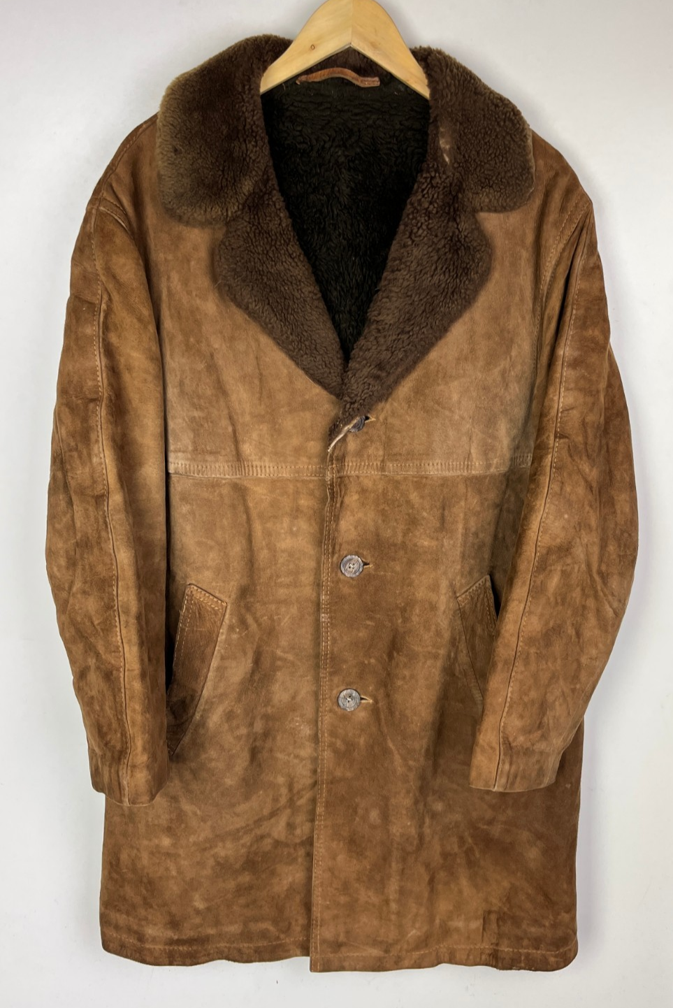 MEN`S SUEDE COAT Authentic vintage suede coat Full lining excluding sleeves Front pockets, cosy & warm Outer: real suede Lining: acrylic fleece / sherpa Approximate Measurements (in inches): Armpit to armpit: 24" Length: 36" Shoulder seam to cuff: 24" Good used condition with light signs of wear. Stitching came apart in the left armpit. Same day dispatch by Royal Mail for orders paid before 3 pm We send worldwide by Royal Mail. We have a `no questions asked` returns policy so if you`re not happy with your purchase, simply get in touch and we'll do our best to solve the problem (items need to be returned in their original condition). Please check out our other items as we`re always happy to combine postage for multiple purchases. Any questions, please ask. Thanks for looking. (1609/11)
