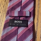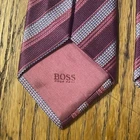 The product is a designer Hugo Boss striped woven silk tie, made in Italy. This men's necktie features a classic width and is crafted from 100% silk fabric in a multicolor striped pattern. The high-quality material and intricate weaving technique make it a sophisticated and stylish accessory for any formal or professional occasion. Made by the renowned brand Hugo Boss, this tie exudes a sense of luxury and designer flair, perfect for adding a touch of elegance to any outfit.