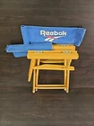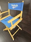 This Reebok director's chair is a must-have for any collector of vintage advertising items. With its blue color and original 1990s design, it's a rare find that will add a touch of nostalgia to any room. The chair is in great shape and perfect for display purposes. The chair features the Reebok brand name and is a unique piece of furniture that will make a great addition to any collection. It's perfect for display in a man cave, garage, or any other space where it can be admired. Don't miss out on the opportunity to own this authentic piece of vintage advertising history.