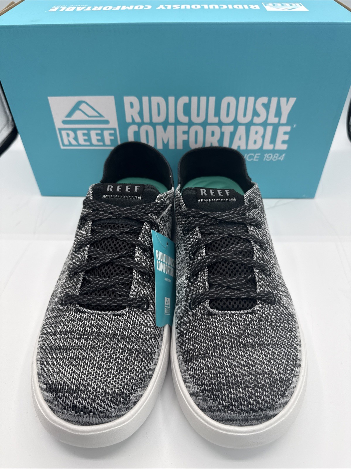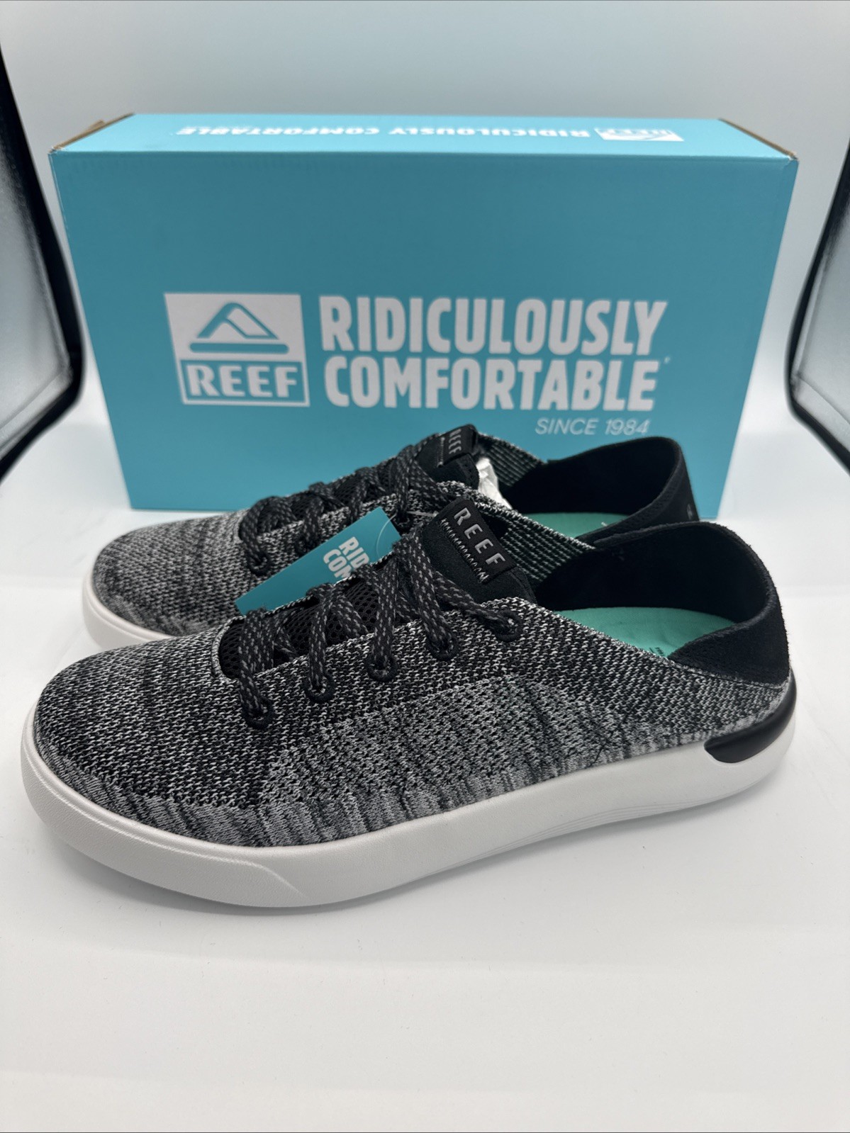 The REEF Swellsole Neptune Cushion Travel Sneakers CJ6016 in Charcoal Grey are stylish and comfortable shoes perfect for travel and casual occasions. Featuring a solid grey color with a round toe shape and lace-up closure, these sneakers are designed for men in size 10 (EU 43). The mesh fabric and synthetic upper material make them lightweight and breathable, while the cushioned foam insole and rubber outsole provide added comfort and support. With a sleek sneaker style and cushioned design, these Reef shoes are a versatile option for the summer, fall, and spring seasons.